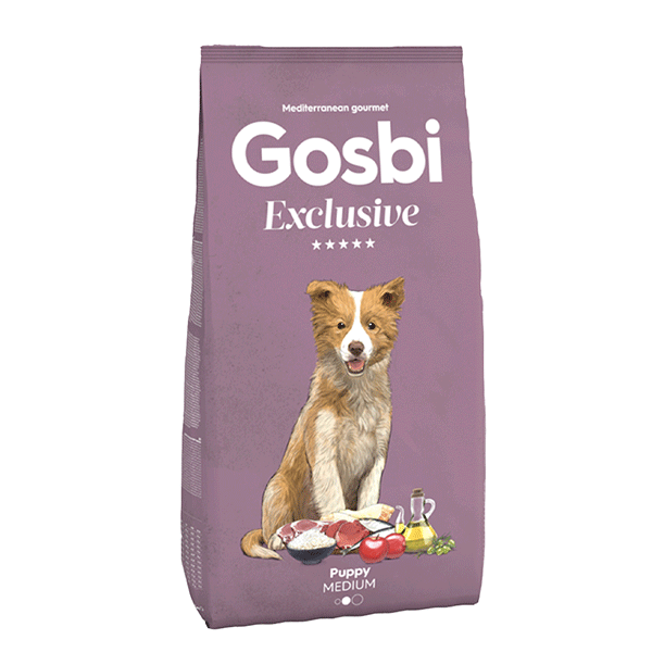 גוסבי גורים מדיום מיוצר ממבחר עשיר של פירות וירקות, צמחי מרפא פירות ים, קטניות מלאות וחיידקים פרו-ביוטיים המעניקים ערכים תזונתיים גבוהים לשמירה על בריאות תקינה ולרמת חיים גבוהה. המרכיב העיקרי במזון הוא בשר עוף נקי ומיובש לצד בשר כבש ודגים כחולים ברמה הגבוה ביותר. שימוש בבשר איכותי, לצד שיטת הבישול האיטית, מבטיח רמת נעכלות חסרת תקדים ( מינ’ 94%) ומסייע בצמצום הסיכוי לפתח אלרגיות לחלבון העוף. בנוסף, שילוב מגוון רחב של מקורות בשר מקנה למזון אחוז גבוה של חלבון ושומן הנדרשים לתהליך הגדילה בשנה הראשונה של חיי הכלב. המזון מכיל רמות חסרות תקדים של גלוקוזמין וכונדרויטין לשמירה על המפרקים ולמניעת תופעת שחיקת הסחוס.