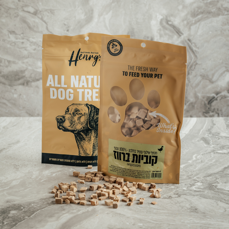 הנריס Henris – חטיף אילוף טבעי קוביות ברווז מיובש בהקפאה!